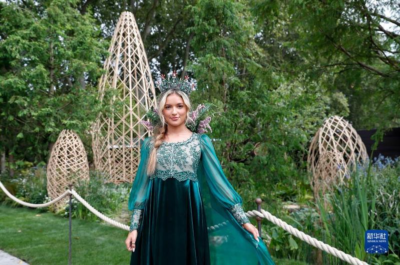 9月20日,在英国伦敦的切尔西花展媒体日上,一名女子在广州花园前拍照。