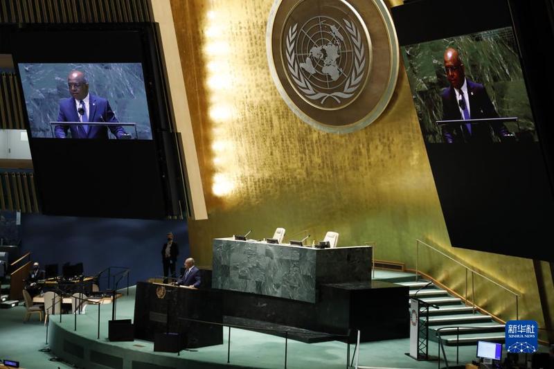 9月20日,在位于纽约的联合国总部,第76届联合国大会主席阿卜杜拉·沙希德在“可持续发展目标时刻”高级别活动上讲话。