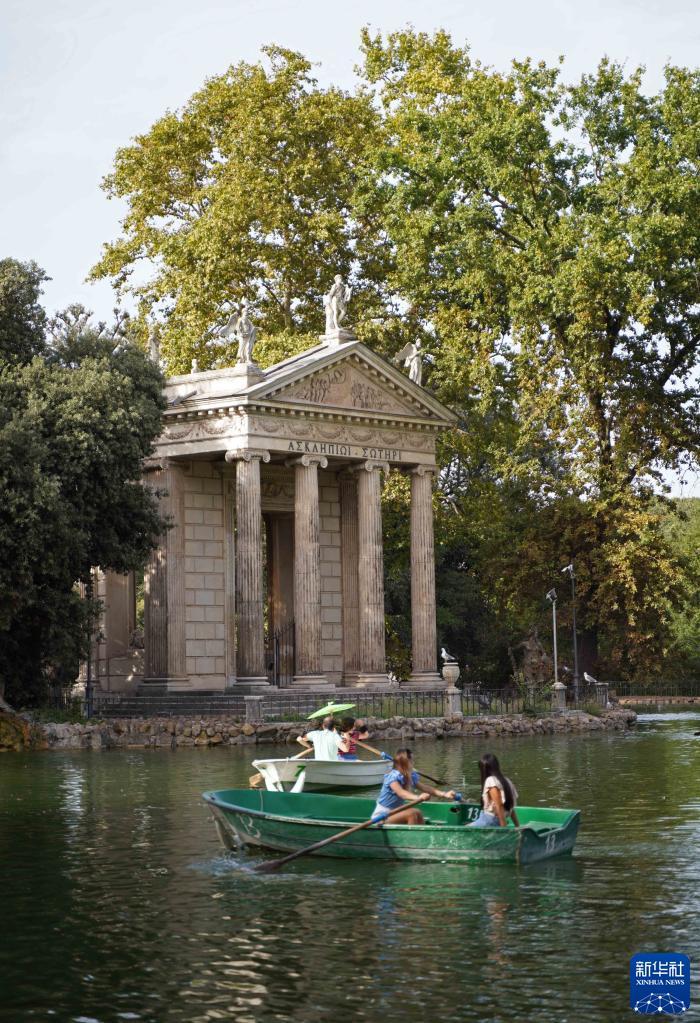 9月25日,人们在意大利罗马的博尔盖塞公园划船。