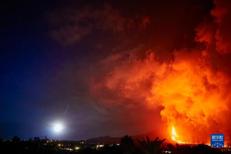 这是9月24日在西班牙拉帕尔马岛拍摄的老昆布雷火山喷发的景象。