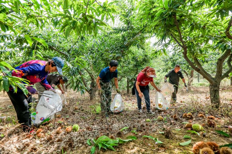 ▲丹东板栗进入收获季,村民们在板栗园里捡拾刚刚打下来的板栗。沈晓凯 摄 大学生返乡包山种板栗 带动村民增收致富 9月18日,丹东东港市卧虎村一处板栗园内,漫山遍野的板栗球挂满枝头“开口笑”,栗民们打板栗、捡板栗、去刺壳,开启一年中最忙碌的丰收季。 黝黑皮肤、声音沙哑的刘大鹏也穿梭于板栗树间,一边安排栗农采摘,一边远程“遥控”网店卖板栗,“这阵我每天五点起床,凌晨一点才睡觉。” 今年32岁的刘大鹏,毕业于辽宁工程技术大学财务管理专业,在企业做过出纳员。但这种循规蹈矩的日子,他觉得有点儿没劲,辞职后便跑起业务卖土鸡蛋。 2015年,他开始在网上卖海鲜、草莓、蓝莓等丹东特产。彼时,以销售农产品起家的新电商平台拼多多也进入他的关注视线。当他意识到拼多多在助力农产品上行方面大有可为时,便于2016年果断开了一家板栗店铺,当年双十一,就卖了近500万元。 市场打开了,板栗供不应求。刘大鹏和媳妇商量后,2017年他在卧虎村流转200亩板栗园,自种自产自销。“板栗树修剪、施肥,有虫害要打药,这些都要从头学,现在都驾轻就熟。”刘大鹏说,他在市区长大,但喜欢农村生活。 刘大鹏精心打理板栗园,确保原产地的品质,到了丰收季,便通过拼多多上的网店销往全国。有稳定的销售渠道,周边的栗农也放心把自家板栗卖给他,卧虎村的板栗几乎都被他收了。农闲时,栗农们就到刘大鹏的板栗园打零工。 村民曹庆祥种了10亩板栗树,板栗下树后都交给刘大鹏收购,他也在板栗园打工。“打板栗一天有200元工钱,一个月赚六千元。”曹庆祥给记者算账,10亩板栗有七千斤产量,按每斤2.2元收购价算,就有1.5万元的收入。 今年丹东板栗又获丰收,仅刘大鹏在拼多多上的多个店铺,每天销售就达上万单,他还结合平台活动推出补贴价,实现3斤板栗9.9元包邮。刘大鹏希望能把丹东板栗卖到更多地方去,提升丹东板栗名气,“丹东板栗价格起得来,栗农的收入就会有更好的保障。”