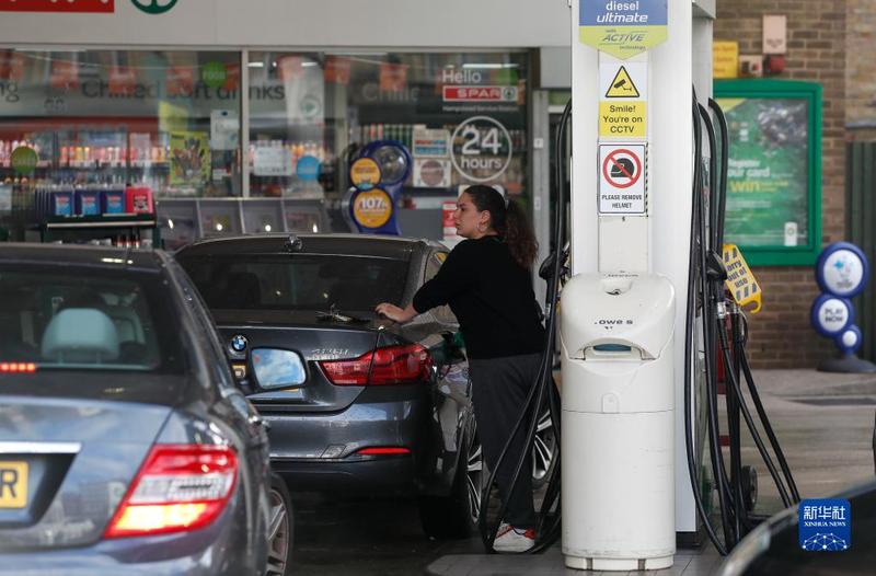 9月27日,一名女子在英国伦敦一家加油站加油。新华社记者 韩岩 摄