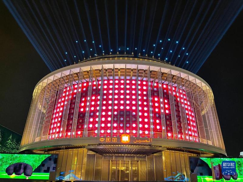 这是10月4日在阿拉伯联合酋长国迪拜拍摄的迪拜世博会中国馆大型主题灯光秀。