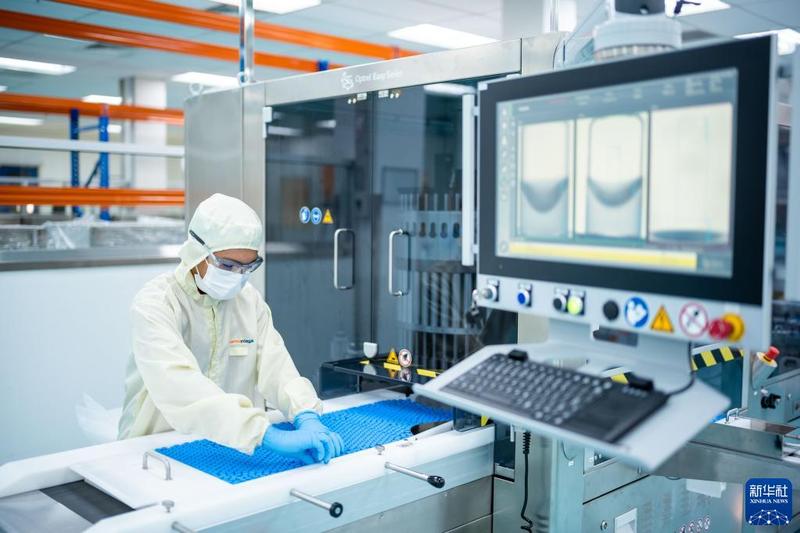 10月5日,在马来西亚吉隆坡郊区的发马公司灌装工厂,一名工人在科兴疫苗本地灌装生产线上工作。新华社记者 朱炜 摄