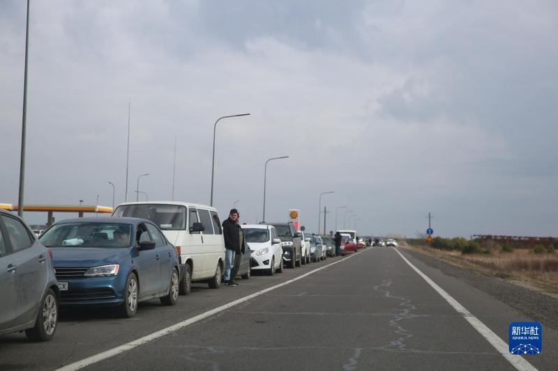 2月27日,在乌克兰克拉科韦茨,车辆排队等待前往波兰方向。