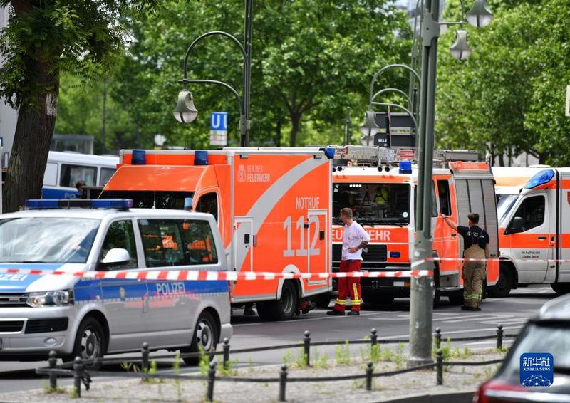 6月8日,救援人员在德国柏林车辆冲入人群事件现场附近工作。新华社记者 任鹏飞 摄