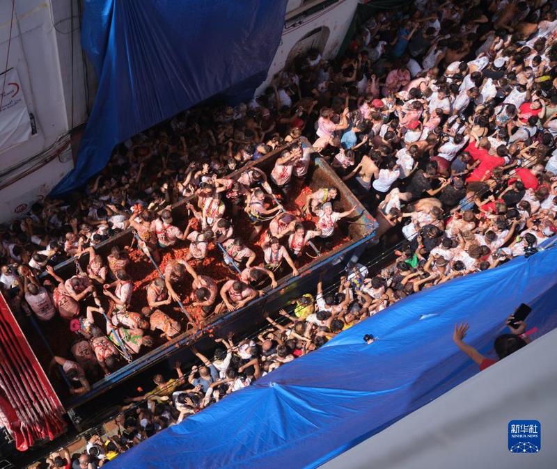 8月31日,在西班牙布尼奥尔举行的“西红柿节”上,人们参加“西红柿大战”。 每年8月最后一个星期三,西班牙巴伦西亚地区的布尼奥尔小镇都会举行一年一度的传统节日——“西红柿节”。 新华社记者 孟鼎博 摄 |