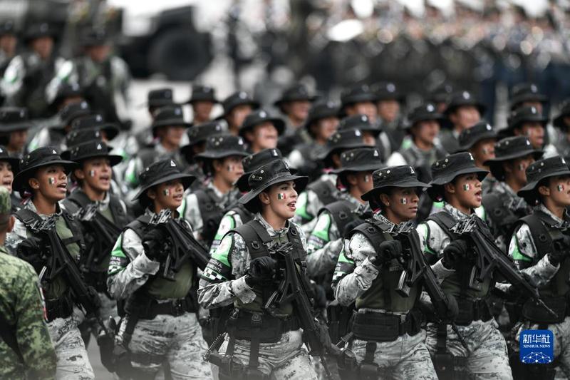 9月16日,在墨西哥首都墨西哥城,墨西哥国民警卫队参加阅兵式。