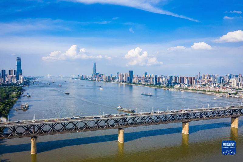 武汉江景(2021年6月13日摄,无人机照片)。新华社记者 肖艺九 摄 随着沿江化工企业“关改搬转”不断推进,湖北各地传统化工“离江而去”,新能源新材料等一批“含绿量”“含新量”“含金量”更高的产业迎来蓬勃发展。 沿着滔滔江水继续向东下行,记者来到位于黄石大冶的湖北融通高科先进材料有限公司产业园。这里,火热的建设现场与红火的生产车间交相辉映。 “我们生产的新能源电池正极材料最终被加工成新能源电池,应用到动力、储能等诸多领域,这为降碳减排以及清洁能源技术广阔应用提供了有力支撑。”公司外联总监汪启胜介绍,“近年来,公司聚焦‘含绿量’‘含新量’更高的新材料的研发,着力促进清洁低碳安全高效可再生能源高质量发展,打造清洁能源和生态环保全流程创新链条,为建设美丽长江贡献自己的力量。”