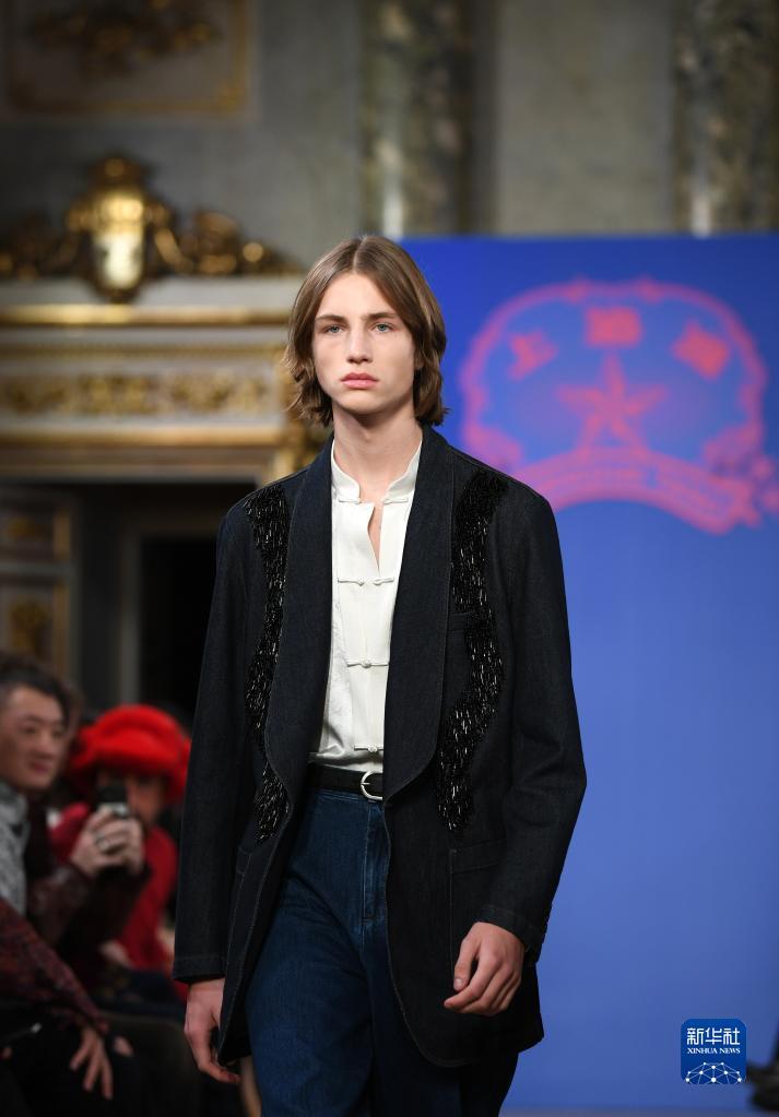 1月14日,一名模特在意大利米兰男装周上展示上海滩品牌时装。