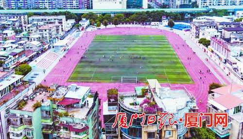 亮点一:塑胶跑道 进行加强层铺设和喷面作业,达到国标——厚度不能少于13毫米。 昨日,健身设备已经焕然一新。 亮点二:足球场 升级改造后将“符合国际足联球场标准”——铺设10毫米厚的弹性层、50毫米厚的草坪,并在草坪内填充石英砂和塑胶颗粒,使草丝更加直立,更好地发挥地面回弹作用。 亮点三:志愿服务驿站 在足球场附近一闲置空地上,区文旅局建设了使用面积约500平方米的厦门市社会体育指导员志愿服务驿站(思明站)。驿站集志愿服务、办公、会议和运动培训等为一体,将有独立的公益运动培训空间,为市民提供更科学、健康的运动指导和服务。