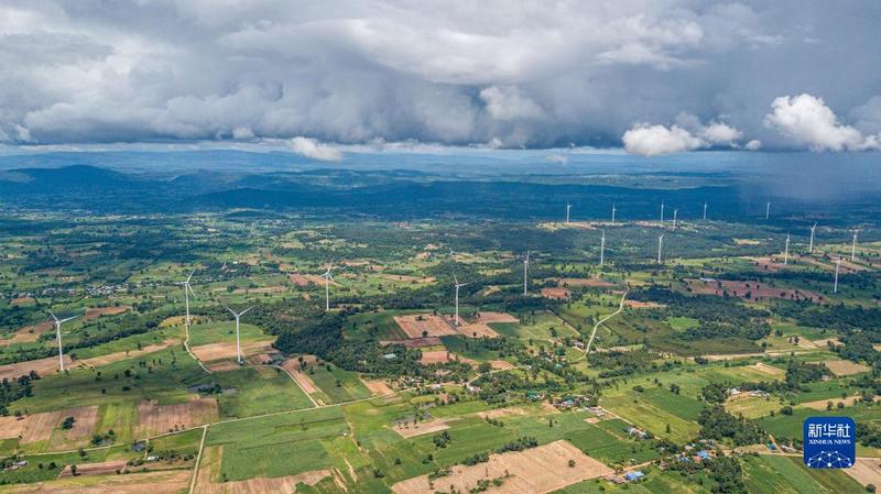 这是10月5日在泰国猜也蓬府拍摄的由中国金风科技提供的风力发电机(无人机照片)。 猜也蓬风电场项目由泰国电力局旗下主要新能源企业EGCO公司开发,中国金风科技提供风力发电机组,总装机容量80兆瓦。 新华社记者 王腾 摄 |