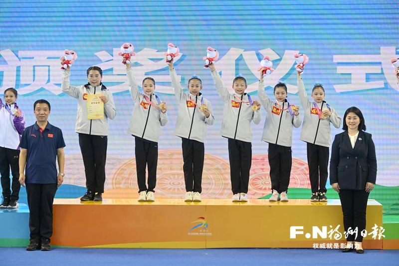 11月9日晚,第一届全国学生(青年)运动会体操女子甲组团体决赛,在广西体育中心举行。陈凤、褚一鸣、李荣津伊、蒋淑婷、粘施言五名小选手通力协作,以200.875分的总成绩为福州市代表团夺得第十三金。