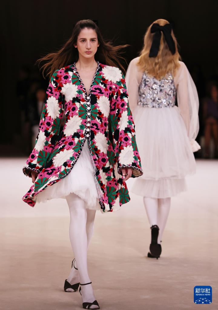 1月23日,模特在法国巴黎高级定制周上展示法国品牌香奈儿2024春夏新品。 当日,香奈儿2024春夏高级定制发布会在法国巴黎举行。本季主题是“纽扣”,纽扣方便服装开合,亦是香奈儿独具辨识度的风格符号。巴黎2024春夏高级定制周于1月22日至25日举行。 新华社记者 高静 摄 |