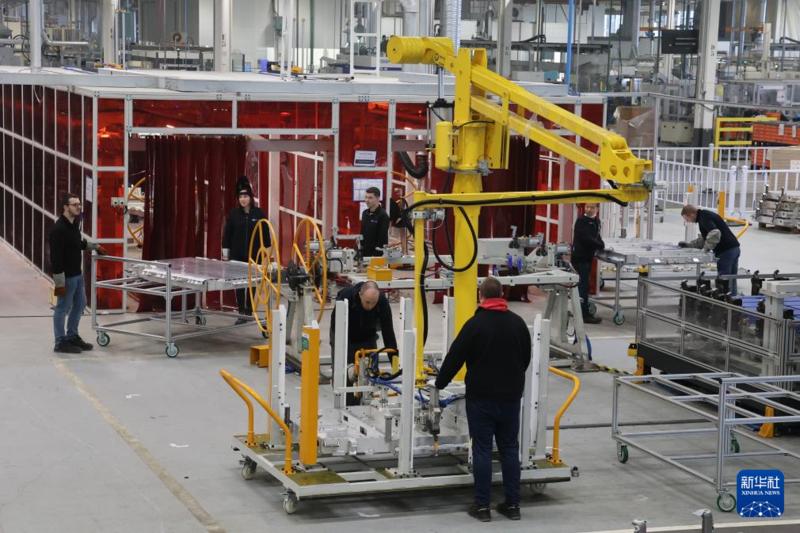 这是2月23日拍摄的中国敏实集团与法国雷诺集团成立的合资公司在法国吕茨工业区投资设立的电池盒生产线。
