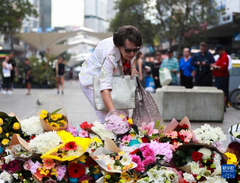4月14日,在澳大利亚悉尼,人们在发生持刀袭击事件的商场附近献花,悼念遇难者。