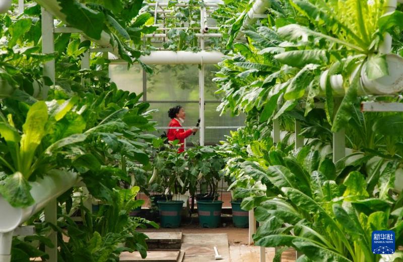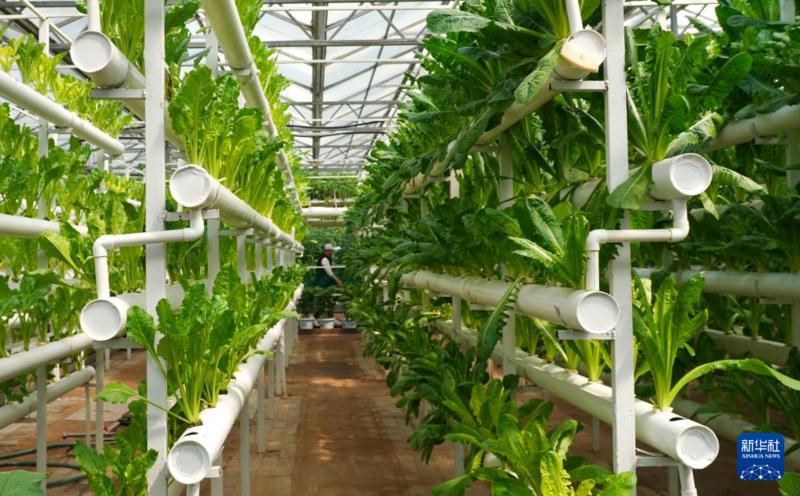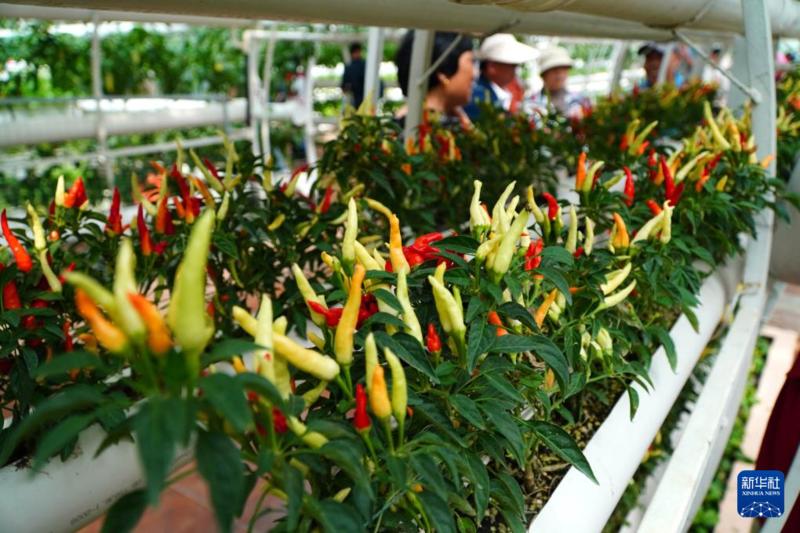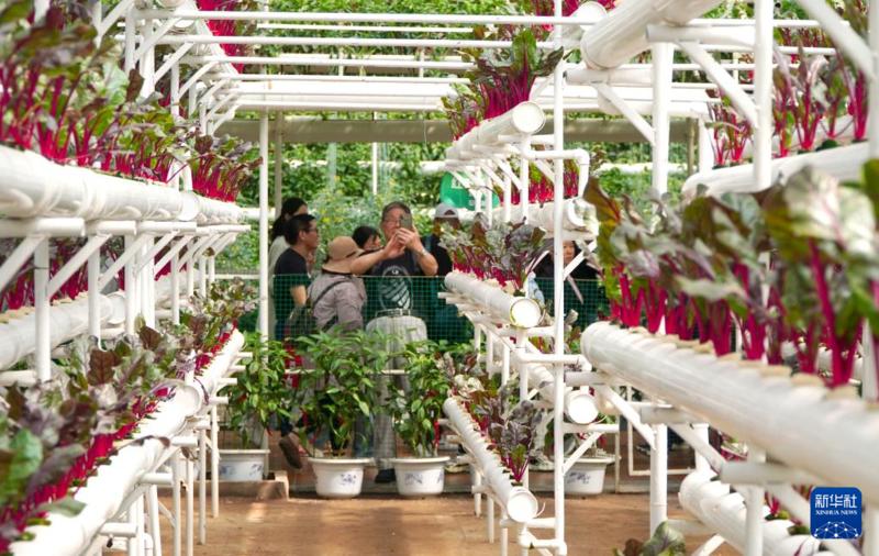 4月21日,参观者在第二十五届中国(寿光)国际蔬菜科技博览会上观看无土栽培温室。 新华社记者 徐速绘 摄