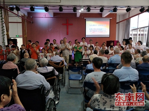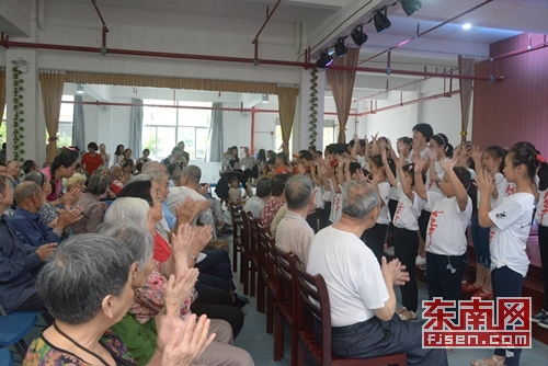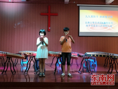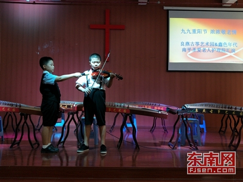 2016年10月7日下午,20名东南网鑫色年代小记者来到了南平市圣爱护理院,提前与这里的100多位老人过了一个愉快的重阳节。小记者们不仅为老人们送去了爱心物资,并为老人们献上了精彩的节目。 下午14:00,小记者们开心地坐上了去护理院的公车。小记者们很快来到了护理院,老人们早早地聚集在礼堂里,等待着这群可爱的孩子们。 小记者展示才艺,老人乐呵呵 欢活动在两位小主持人郭骏禹和薛雨辰的问好声中开始了。小记者们为护理院的老人们带来了精彩的才艺表演,有演讲、古筝弹奏、讲笑话、小提琴独奏等,赢得了老人们的阵阵掌声及欢笑声。