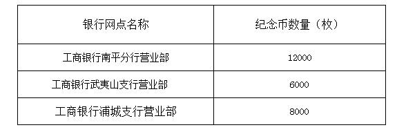 中国工商银行南平分行承担孙中山先生诞辰150周年普通纪念币现场兑换工作的网点和可兑换数量分布如下表,于11月 30日至12月1日,采取现场兑换方式,纪念币可兑换数量兑换完毕,即告兑换工作结束。