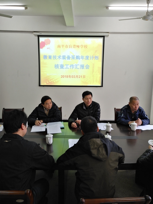 市教育局主要领导对教育技术装备采购工作高度重视,多次指示要对全市直属学校教育技术装备采购计划工作进行核查。根据《南平市教育局局长办公会议纪要》([2017]5号)和《南平市教育局关于规范学校教育技术装备政府采购管理工作的通知》(南教综[2017]11号)文件精神,在市教育局林元树副局长的带领下,核查组于3月13日至22日对市属学校(单位)开展了2018年度教育技术装备采购年度计划核查工作。通过听取汇报、查阅材料、专家质疑、实地察看先后到武夷学院等十六所院校,进行了年度采购计划论证审查,目的是要充分发挥教育经费的使用效益,确保安全合格的教学设备进入学校,促进教育技术装备政府采购管理工作健康、规范发展。