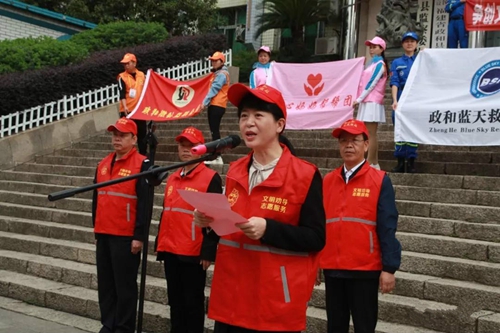 参加活动的全体志愿者在政和蓝天救援队队长罗祥武领誓下庄严宣誓,随后,志愿者们来到熊山森林公园参加环保活动。