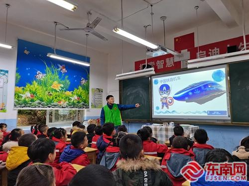 东南网讯 12月18日,武夷山市南源岭小学的一间教室内热火朝天,同学们争先恐后抢答南铁青年志愿者提出的铁路安全问题。当日,中国铁路南昌局集团有限公司南平工务段青年志愿者吴志祥、福州铁路公安处武夷山车站派出所青年志愿者李子腾等一行7人在武夷山市公馆小学、南源岭小学和湖桃小学开展“中国少年儿童铁路平安行动”。