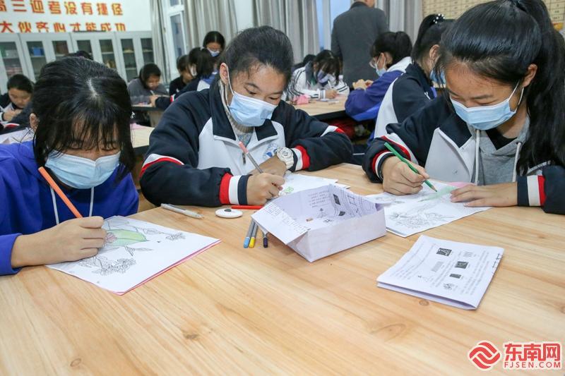 11月5日傍晚,武夷山市第一中学初中部艺术兴趣小组的学生在绘画课上绘画。 邱汝泉/摄