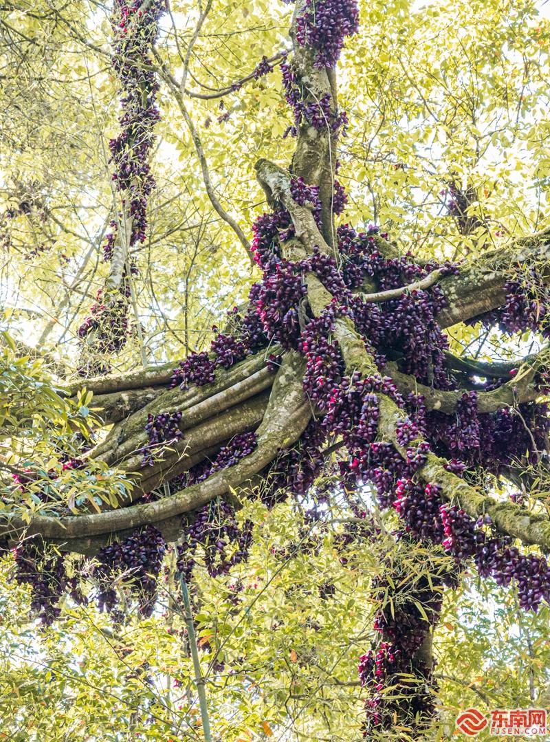 古藤树开出紫色风铃般的花朵。周燕兰 摄 古藤学名油麻藤,属于豆科植物,花朵呈深紫色或紫红色,被人们称之为紫藤花。古藤花并非开在枝头,而是开在藤条的干体上,每年3至4月,便是古藤开花最艳之时。据县林业部门工作人员介绍,这棵古藤树龄至少达百年以上。 “很早之前就听说过这棵古藤,今天刚好有机会过来看一下,觉得挺稀奇的。”市民林女士说道。 |