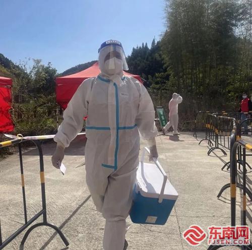 毛信东在山下乡铁场村核酸检测点取样本 浦城县融媒体中心供图