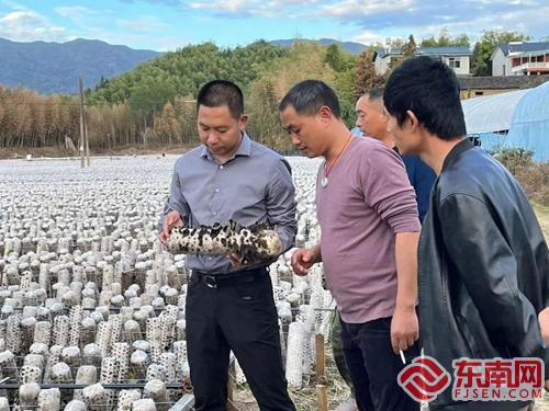 乡镇干部与种植户一同察看食用菌生长情况 浦城县融媒体中心供图