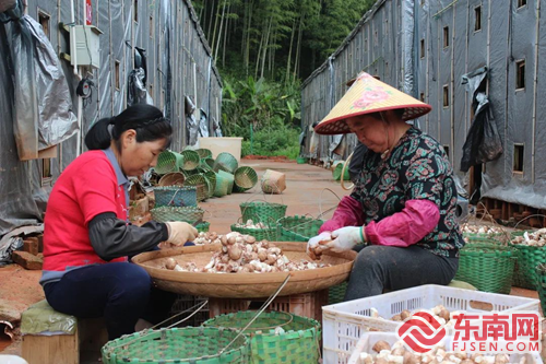 村民正在挑拣菌菇 顺昌县融媒体中心供图