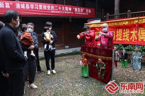 连日来,浦城县将“福小宣·‘浦’新篇”微宣讲活动与浦城剪纸、提线木偶等当地优秀传统文化相结合,以“理论宣讲+文艺表演”的形式把优秀的文艺作品送到群众家门口,把党的“好声音”传递到群众心里,激励引导广大干部群众凝聚起干事创业的热情,建设宜居宜业宜游美丽新浦城。
