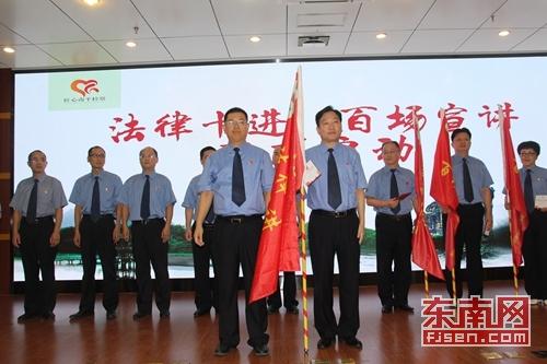 吴荣才在启动仪式上指出,南平市检察院总结近年来普法工作经验,创新思路决定在全市检察机关开展“法律十进百场宣讲”活动,不仅是“铸造南平检察匠心工程”的有力抓手,更是推进平安南平和法治南平建设的重要举措。他强调,活动要坚持以习近平新时代中国特色社会主义思想为指导,牢固树立“四个意识”,深刻认识开展这次活动的重要意义,以匠心精神扎实做好每次宣讲,切实把活动引向深入,打造普法工作升级版,擦亮南平市法治宣传教育工作名片。