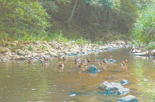近日,顺昌县埔上镇河长办工作人员在埔上镇至九龙山一处悬崖下的山涧里巡查时,发现一个野生鸳鸯越冬群落,数量达70多只。据顺昌观鸟协会介绍,发现如此大规模的野生鸳鸯群,在整个闽北都实属罕见。