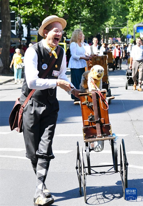 7月2日,手摇风琴表演者在德国柏林参加艺术节巡游。