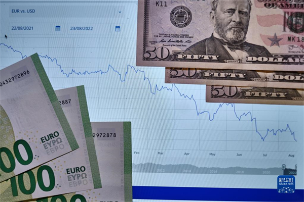 德国法兰克福证券交易所发布的数据显示,欧元对美元汇率22日再次跌破1比1,最低曾跌至1比0.9934,创下20年来新低。