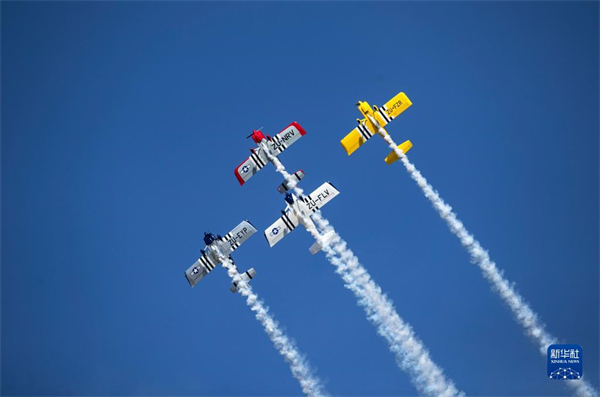 这是9月4日在南非约翰内斯堡拍摄的兰德航展上的飞行表演。