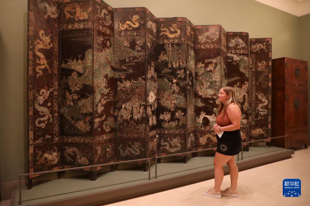 8月11日,一名女子在美国堪萨斯城纳尔逊-阿特金斯艺术博物馆参观。新华社记者 徐剑梅 摄