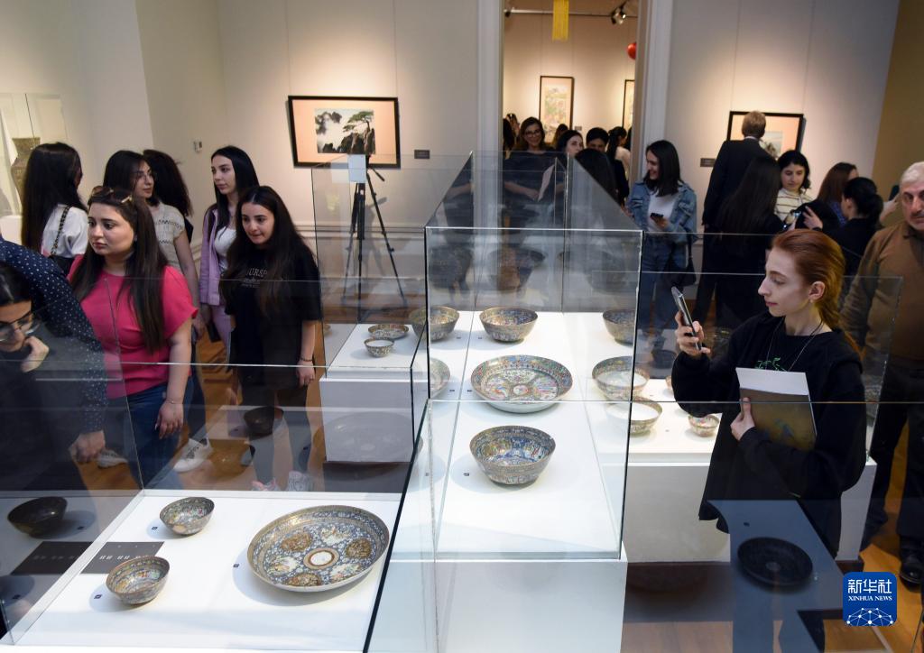 3月29日,人们在位于阿塞拜疆首都巴库的阿塞拜疆国家艺术博物馆观看中国艺术品专题展。
