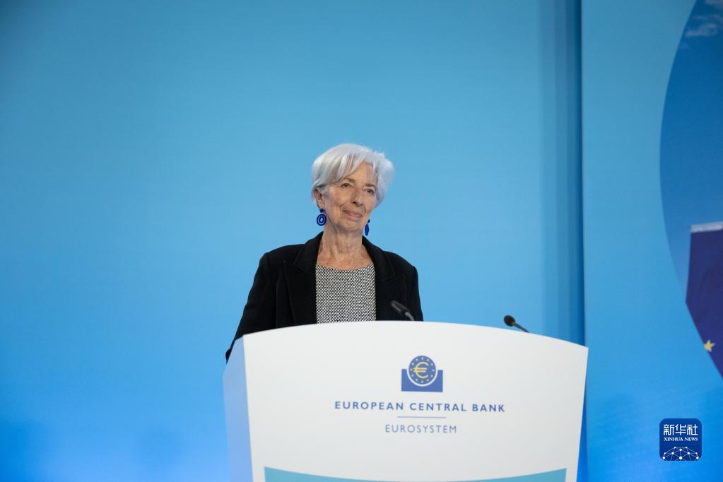 5月4日,欧洲中央银行行长拉加德在德国法兰克福欧洲央行总部举行的新闻发布会上讲话。新华社发(欧洲央行供图)