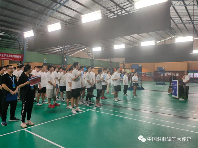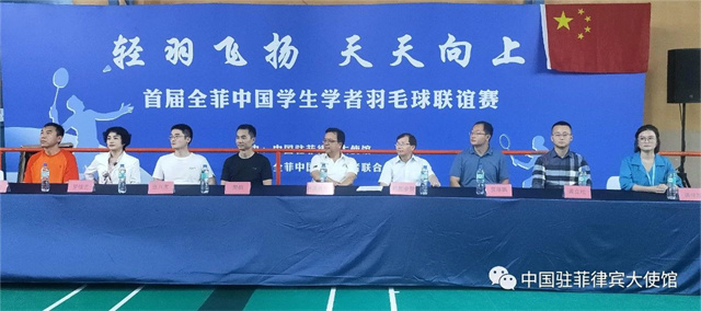 10月26日至27日,由中国驻菲律宾大使馆主办、全菲中国学生学者联合会承办的“轻羽飞扬 天天向上”——首届全菲中国学生学者羽毛球联谊赛在菲律宾马尼拉举行。中国驻菲律宾大使黄溪连出席开幕式并致辞。中国驻菲律宾使馆教育参赞熊胜,全菲中国学生学者联合会代表及运动员、裁判员、羽毛球爱好者等百余人参加活动。
