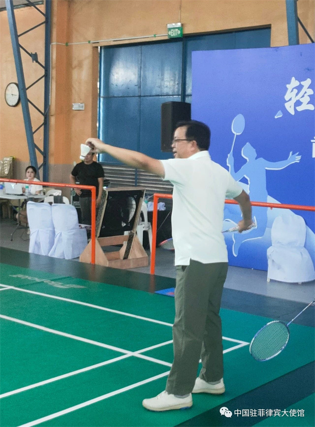 黄溪连指出,体育运动是增强体质的有效手段,羽毛球运动是一项充满活力的运动,同学们不仅要学得棒棒的,更要练得壮壮的;体育精神是优秀文化的重要载体,同学们不仅要弘扬中华体育精神,更要讲好中国体育故事,展现中华民族文化自信;体育交流是增进友谊的坚韧纽带,同学们不仅要加强中菲体育交流,更要以体育为媒,进一步深入推动中菲民心相通。希望同学们自信自强,开拓奋进,开放包容,积极发挥民间外交生力军作用,助力中菲互学互鉴,在求学世界、圆梦中华的征程上书写人生华章。