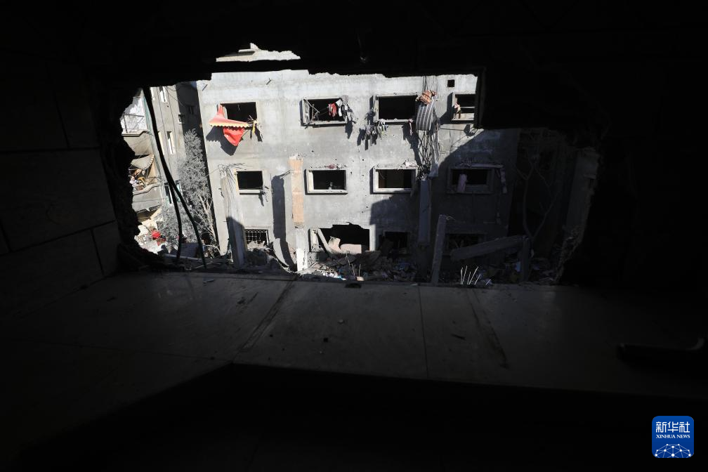 这是12月24日在加沙地带南部城市汗尤尼斯拍摄的以军袭击后的受损建筑。新华社发(里泽克·阿卜杜勒贾瓦德摄)
