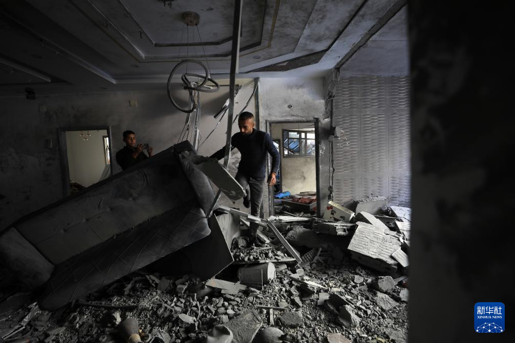 12月24日,在加沙地带南部城市汗尤尼斯,人们查看以军袭击后的受损情况。新华社发(里泽克·阿卜杜勒贾瓦德摄)