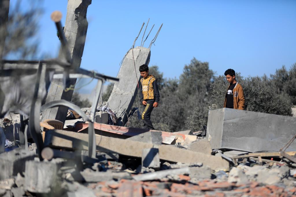 1月7日,在加沙地带南部城市拉法,人们经过以军空袭后的废墟。新华社发(亚西尔·库迪摄)