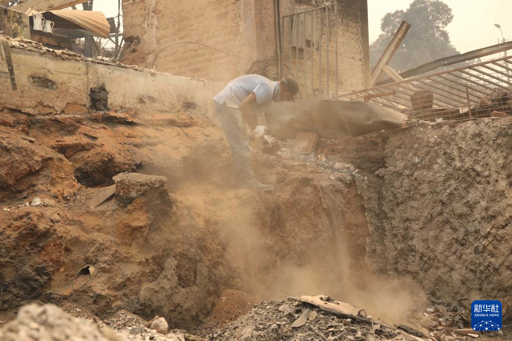 2月3日,在智利瓦尔帕莱索大区比尼亚德尔马市,当地居民清理在森林火灾中烧毁的房屋。新华社发