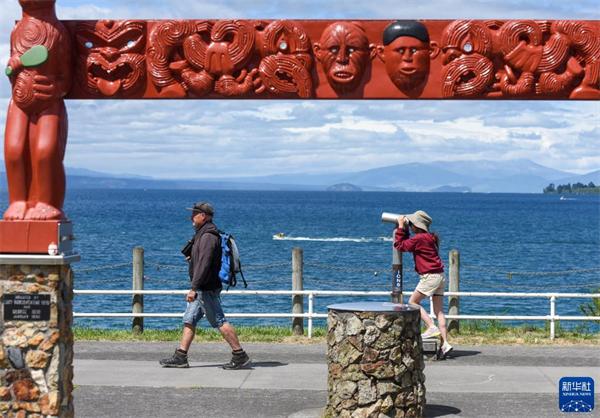 这是2020年12月27日,人们在新西兰北岛中部的陶波湖畔游览。