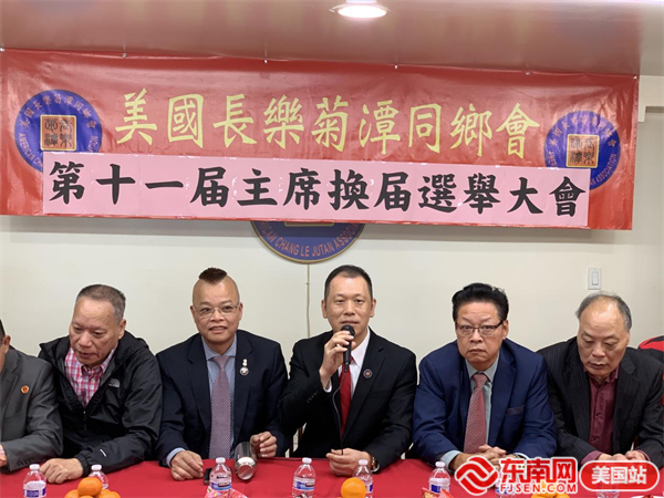 东南网美国9月26日讯(本网特约记者 白水 文/图)当地时间9月25日,美国长乐菊潭同乡会(以下简称“同乡会”)在纽约法拉盛同乡会会所内举行第十一届主席换届选举大会暨庆祝中华人民共和国成立七十三周年,王玉武当选为同乡会第十一届主席。