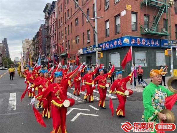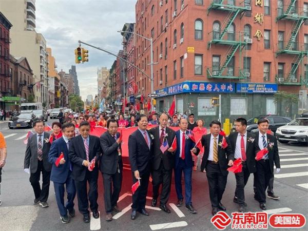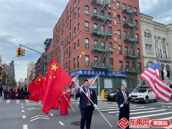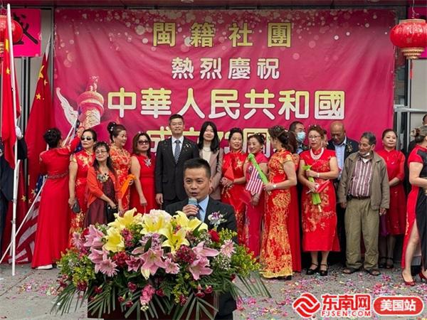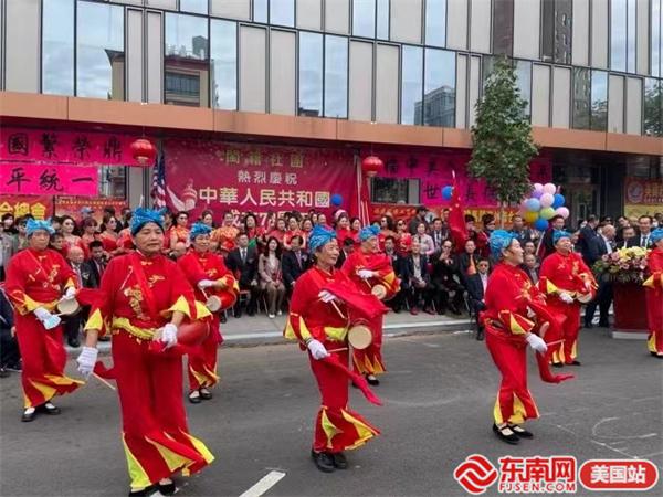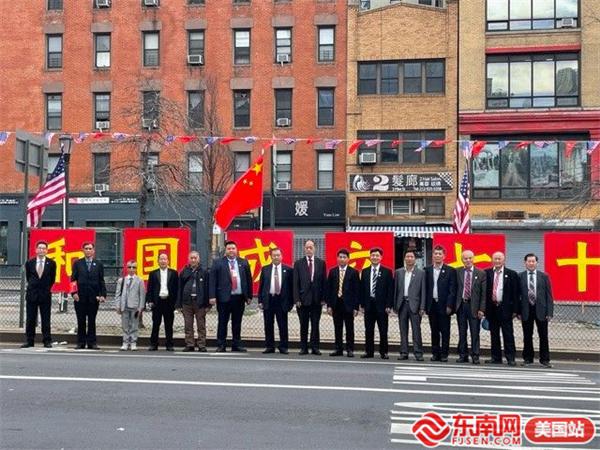 东南网美国9月26日讯(本网特约记者 纽约墨人)唱国歌、奏军乐、升国旗……当地时间9月25日,十多个闽籍社团在纽约华埠东百老汇100号广场举行“闽籍社团庆祝中华人民共和国成立73周年”活动。