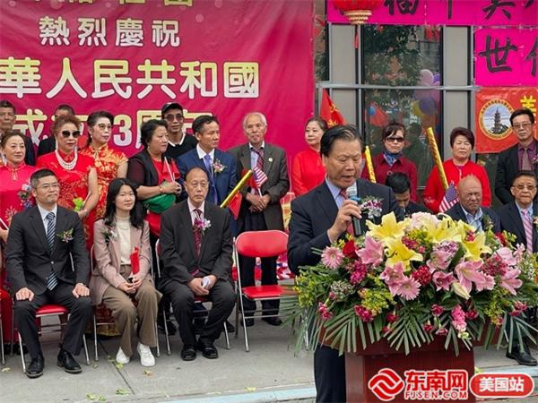 美国福建华人联合会主席李华表示,今年是中华人民共和国成立73周年,作为海外侨胞,将不忘初心,爱国爱乡,积极推动中美两国人民友好往来,积极投身于社区事业发展和建设中。“让我们共同祝愿伟大祖国更加繁荣富强、国泰民安,为中华民族的伟大复兴而努力奋斗。”